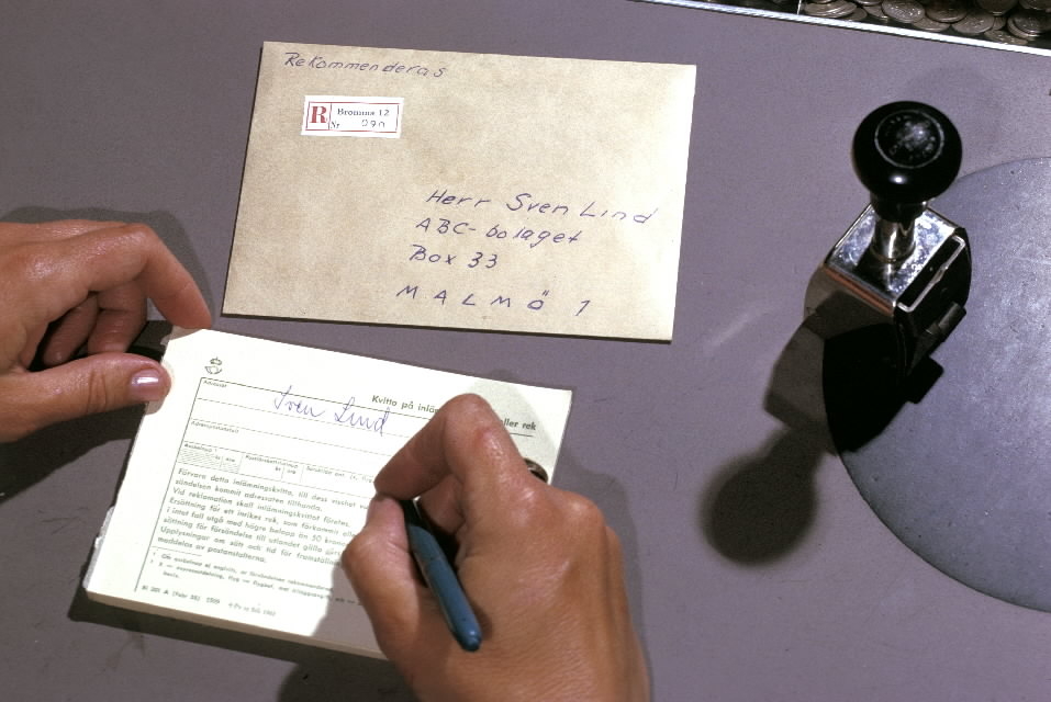 ett kvitto på inlämnat rekommenderat brev, som är försett med