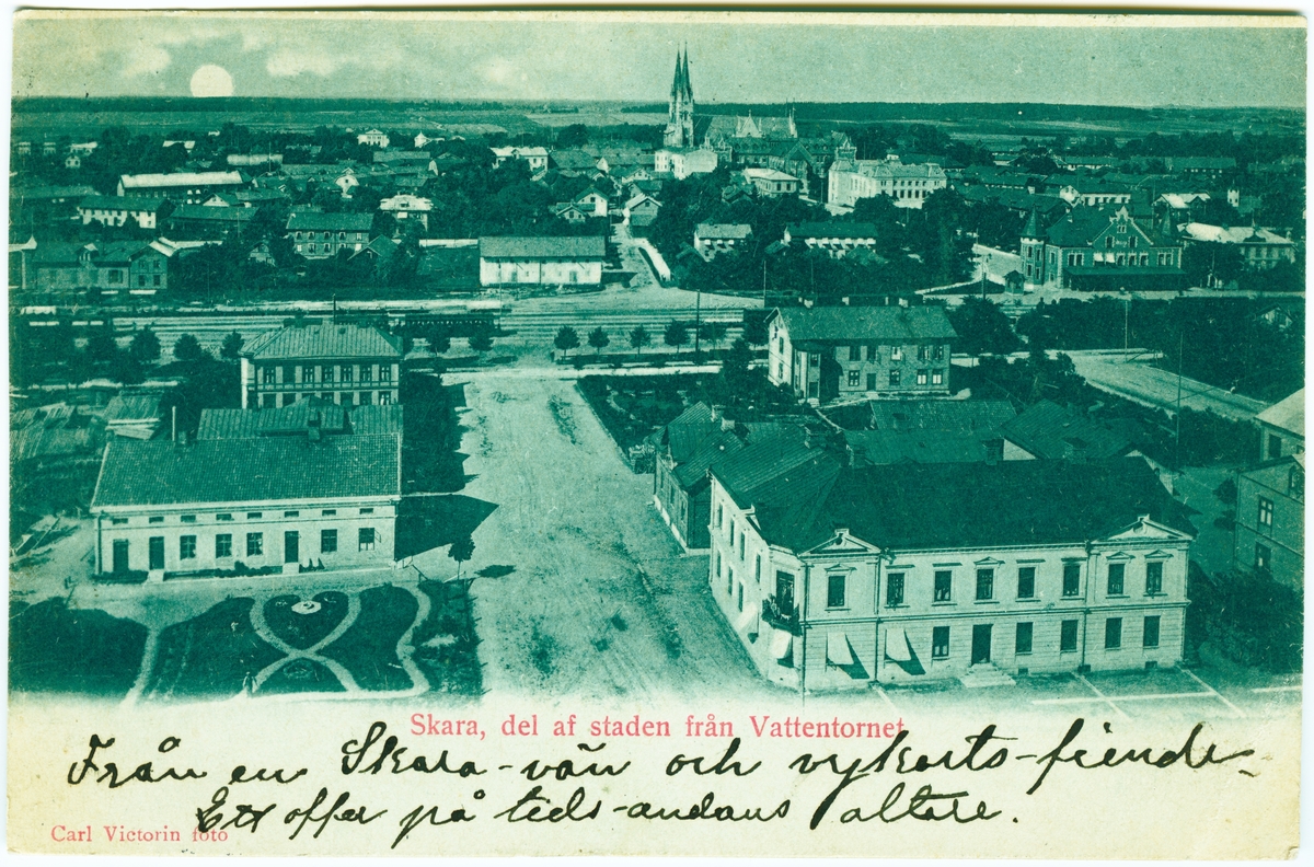 Skara "Skara del af staden från Vattentornet ".