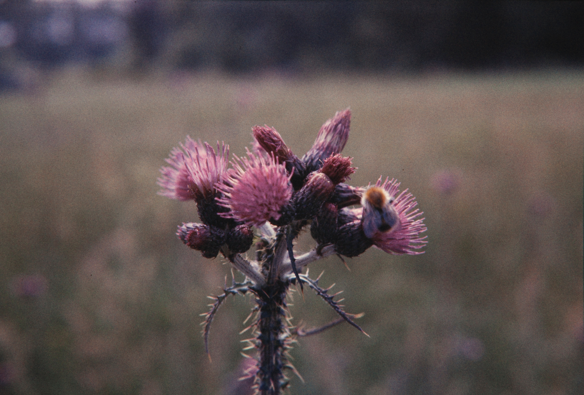 Till höger på tisteln syns en humla.