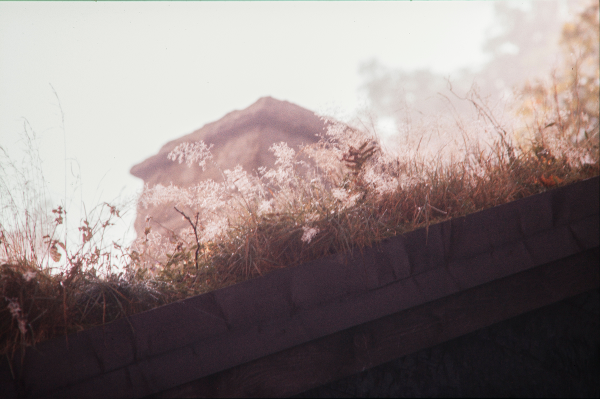 Torvtaket på Linnés Råshult. Tidig morgon, ca. 1960.