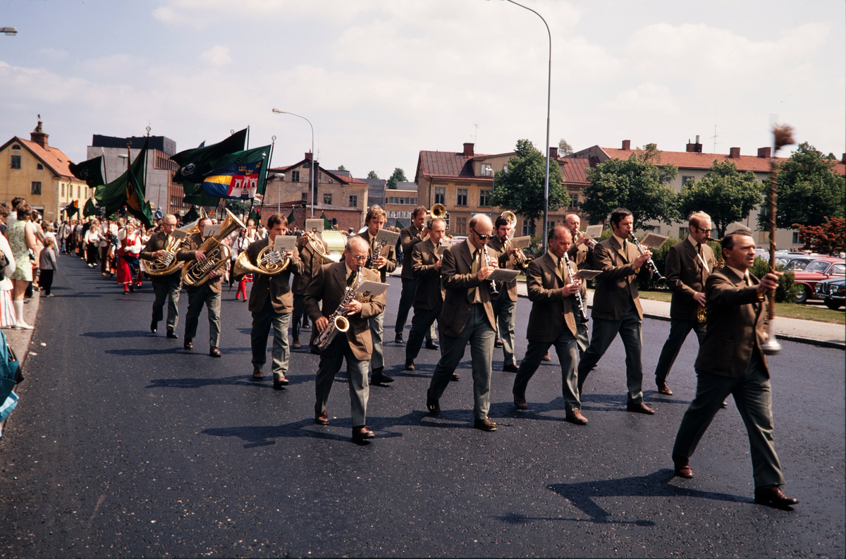Centerpartiets riksstämma, Växjö 1972. En musikkår går paraden i höjd med Oxtorget.