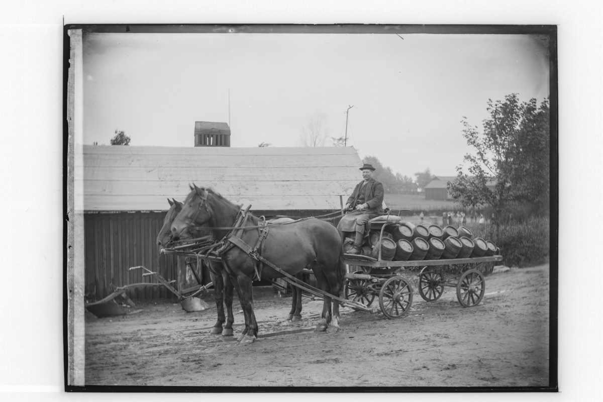 Drickeskörare Fröberg, två hästar spända för drickesvagn.
