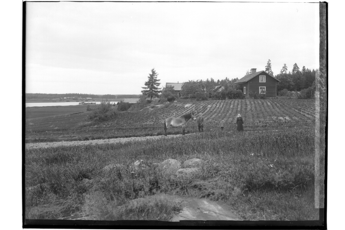 Familj 3 personer och en häst.