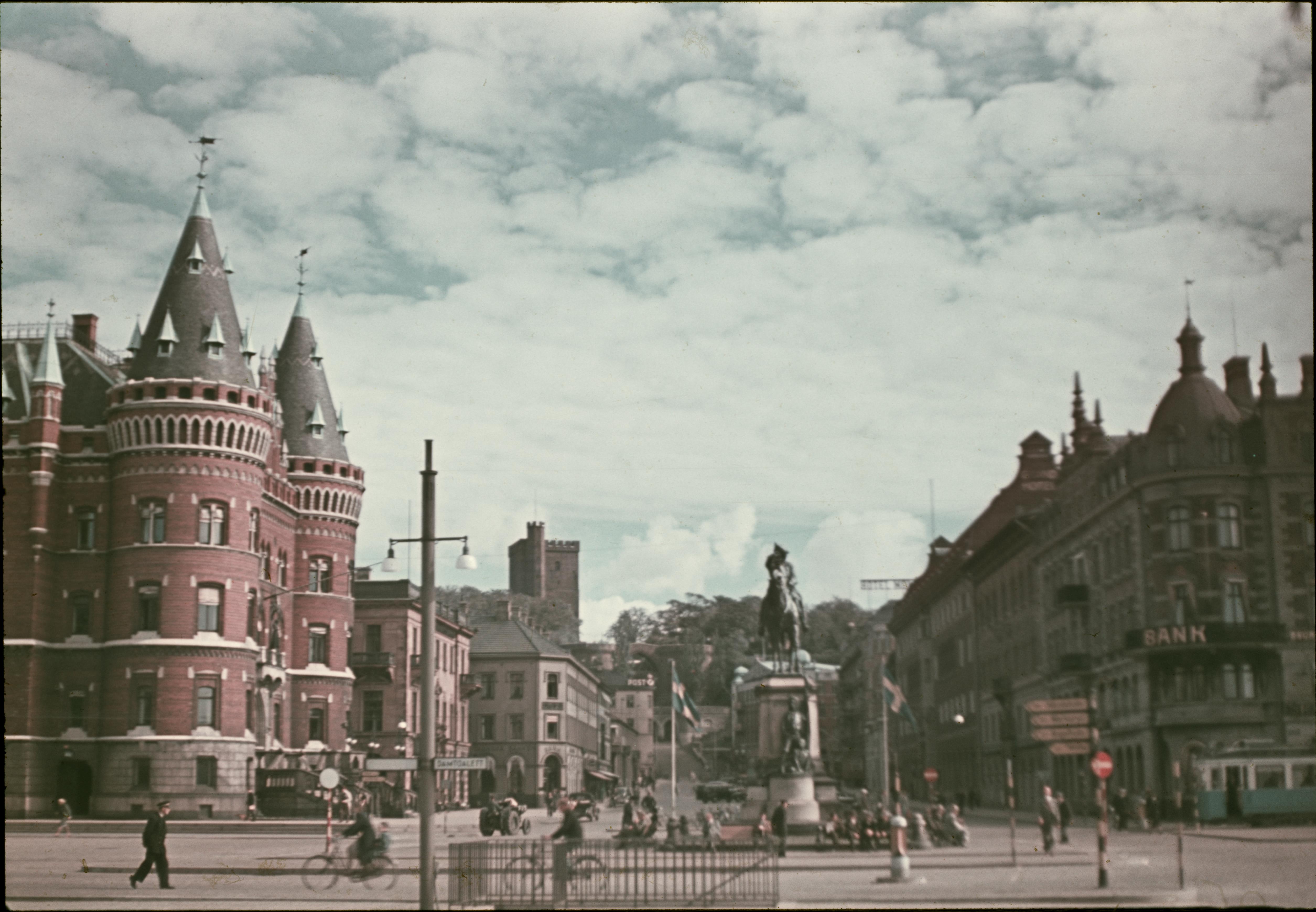 Korsningen Stortorget. I bakgrunden tornet Kärnan. Återfotografering år 2010: se bild nr ND33355a