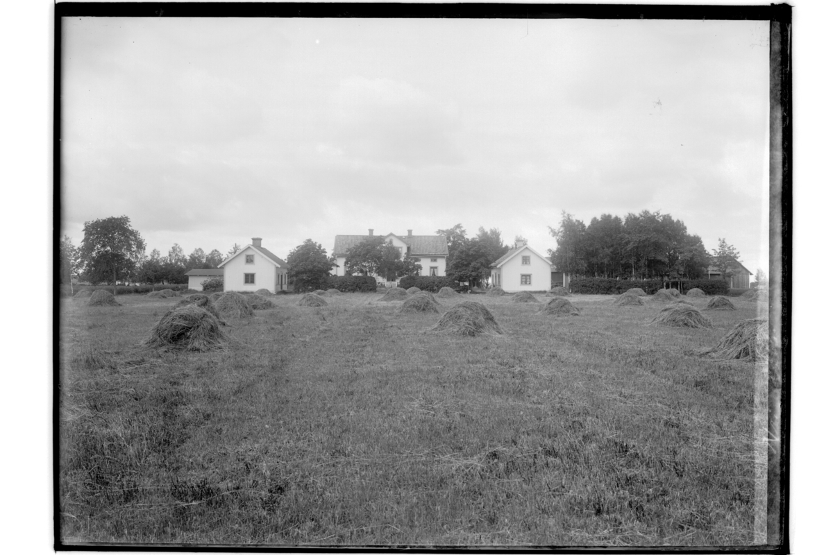 En och en halvplans bostadshus och ekonomibyggnader.