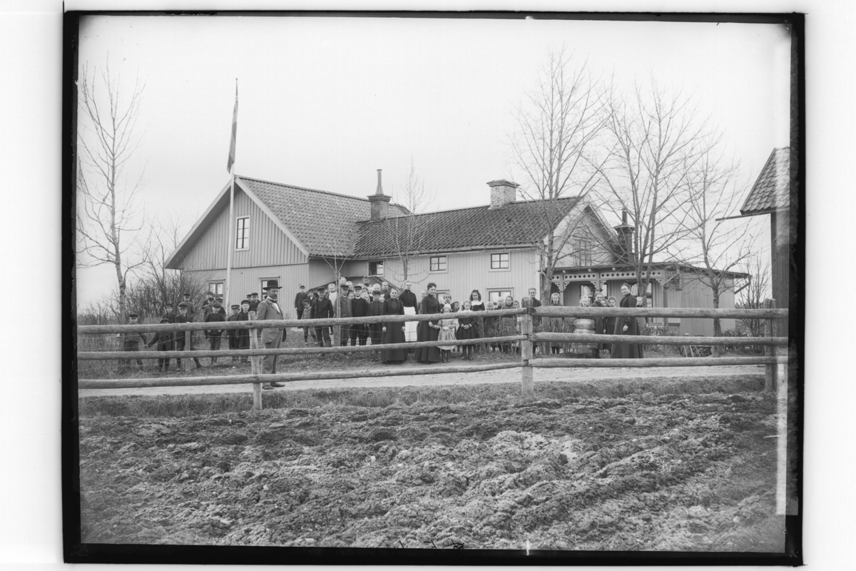 Ekers skola, skolbyggnad, skolbarn på skolgården.