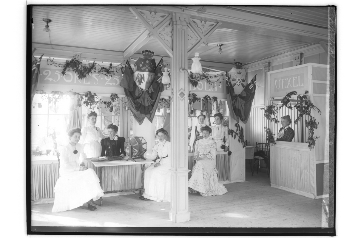 25 öres tombola och växel. 8 utkläda kvinnor.