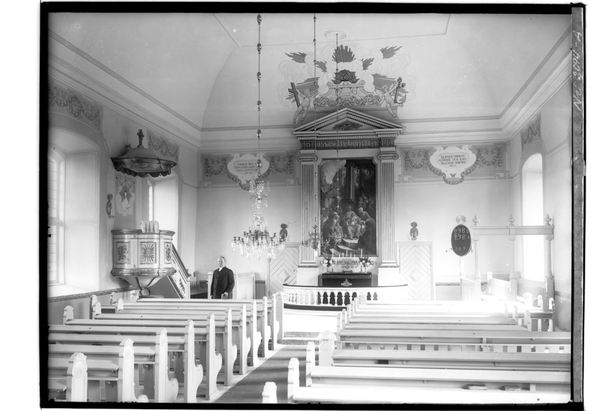 Ekeby kyrka, interiör av kyrkorummet från läktaren.