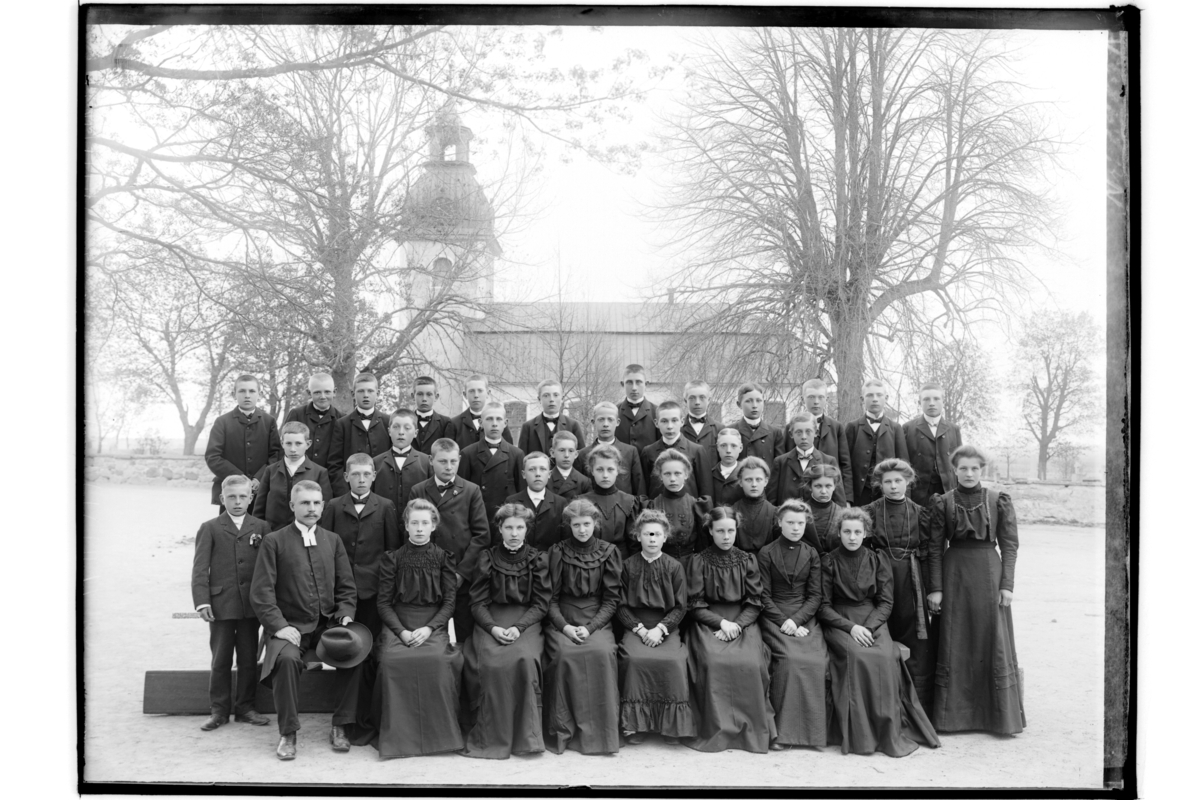 Konfirmander, 36 läsbarn och pastor Sam Ekström.