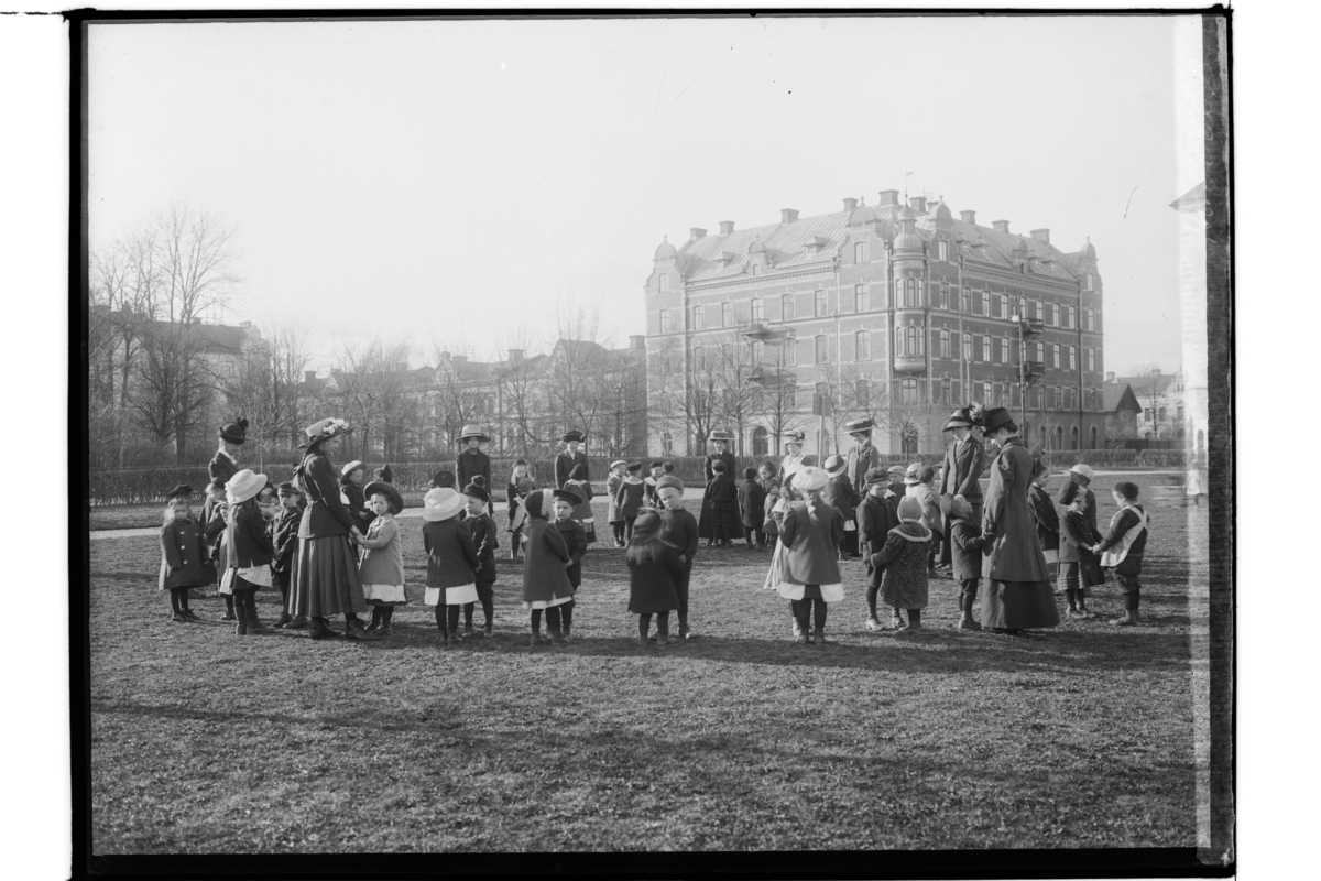 Barn och förskollärare från Kindergarten i Oskarsparken.