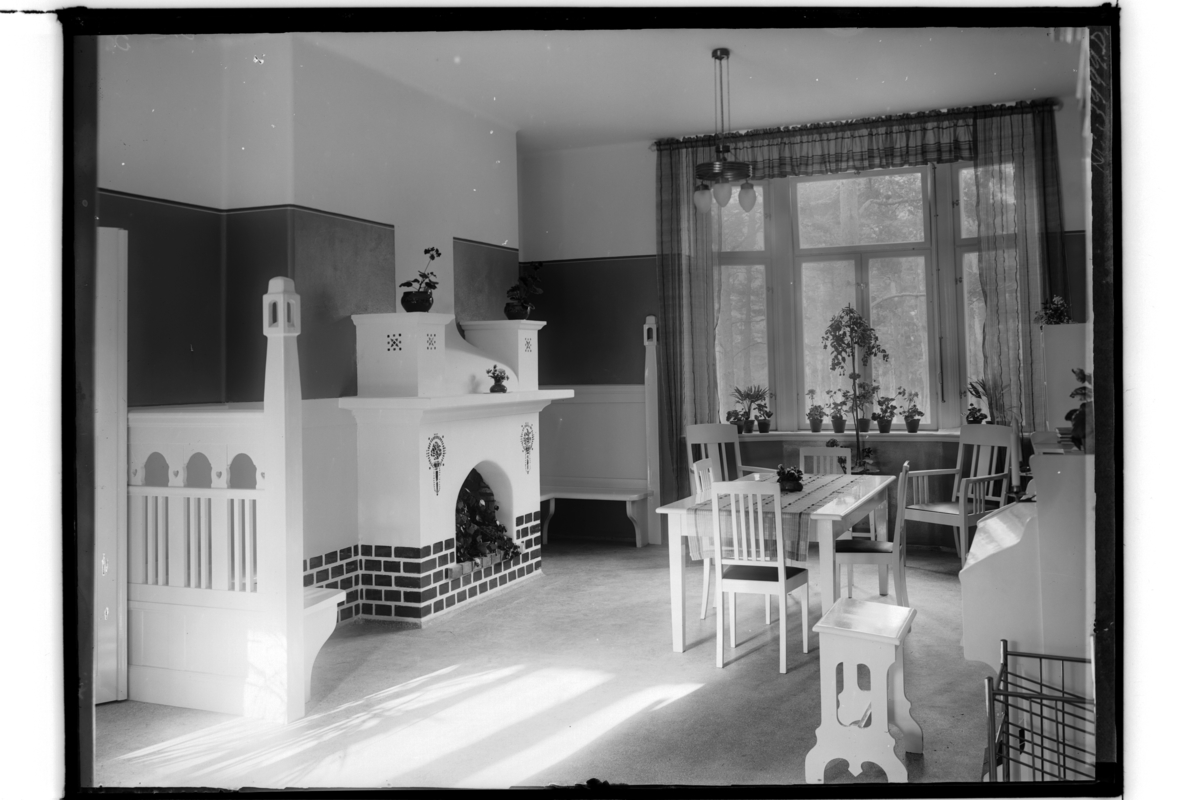 Tuberkolossjukhuset i Adolfsberg, interiör av rum med öppen spis.