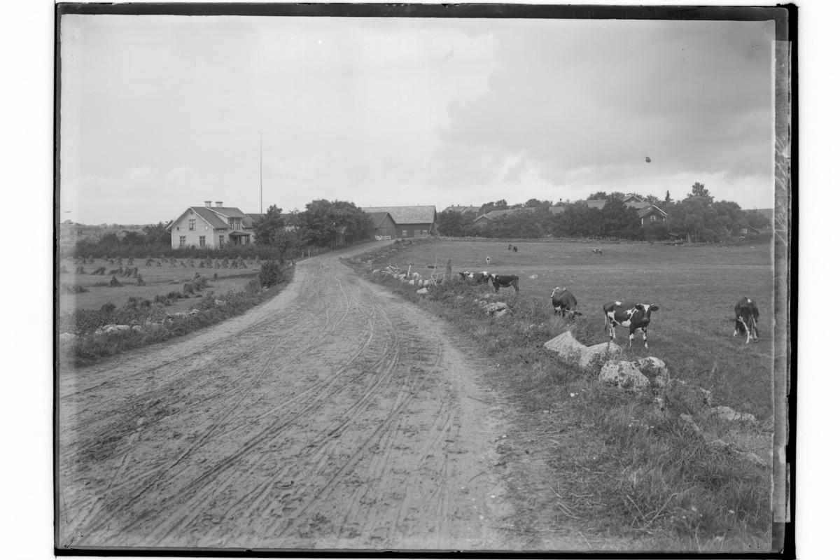 Egeby vy, tagit från skolan mot korna och gärdet.