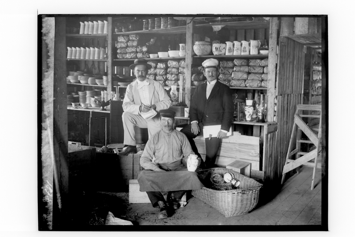 Porslinsaffären Nyman & Co, affärsinteriör, 3 personer.