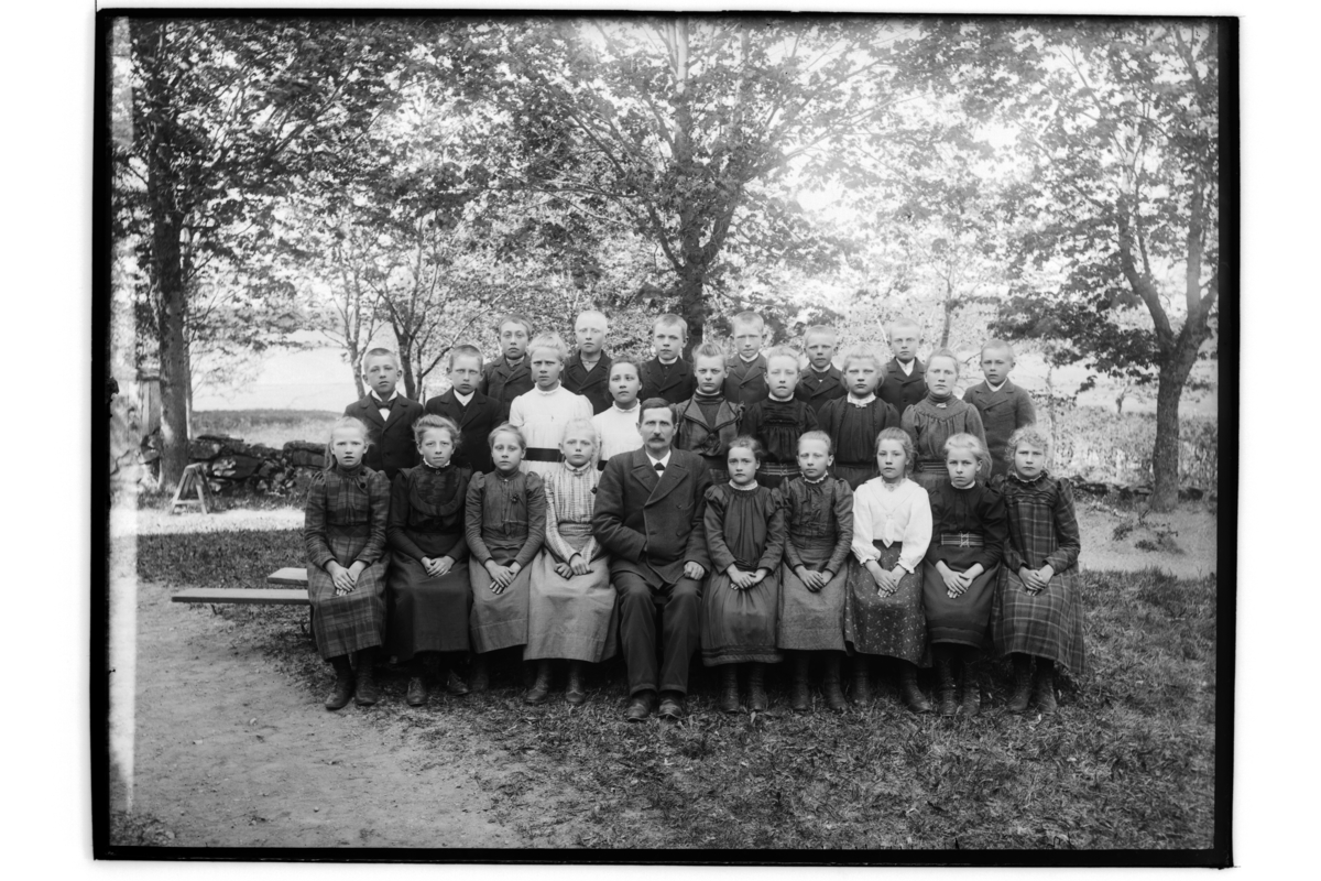 Täby kyrkskola, skolklass, 24 barn med förskolelärare Kilström, Närkes Täby.