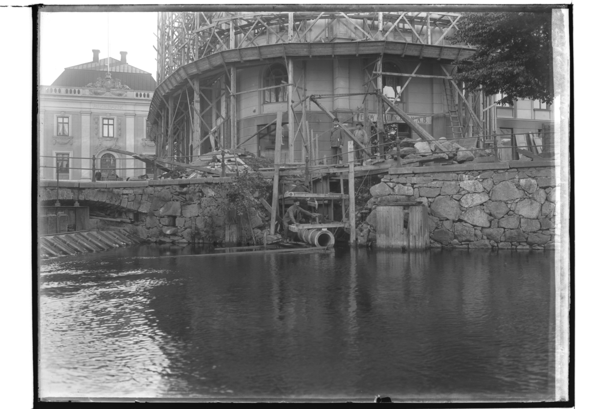 Schaktningsarbete vid Stora Hotellet. Avloppstrumma.