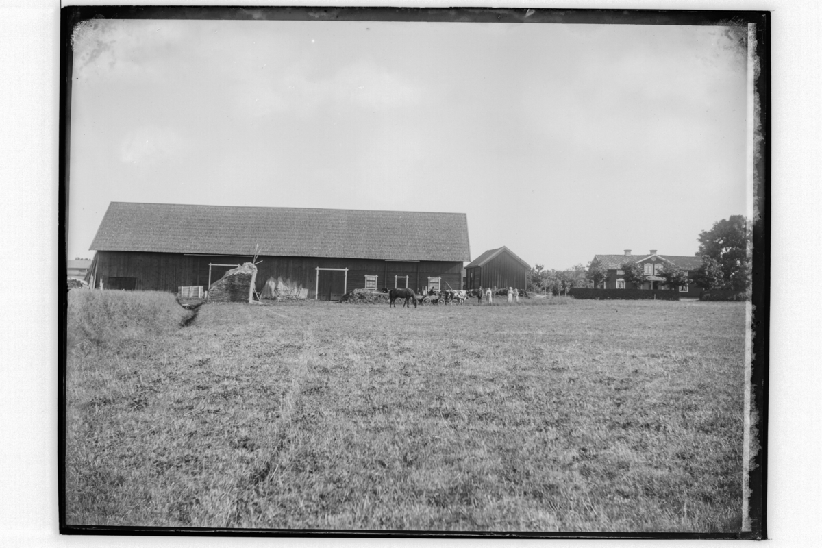 Byggnader. Parstuga i två våningar. Ladugård och uthus.