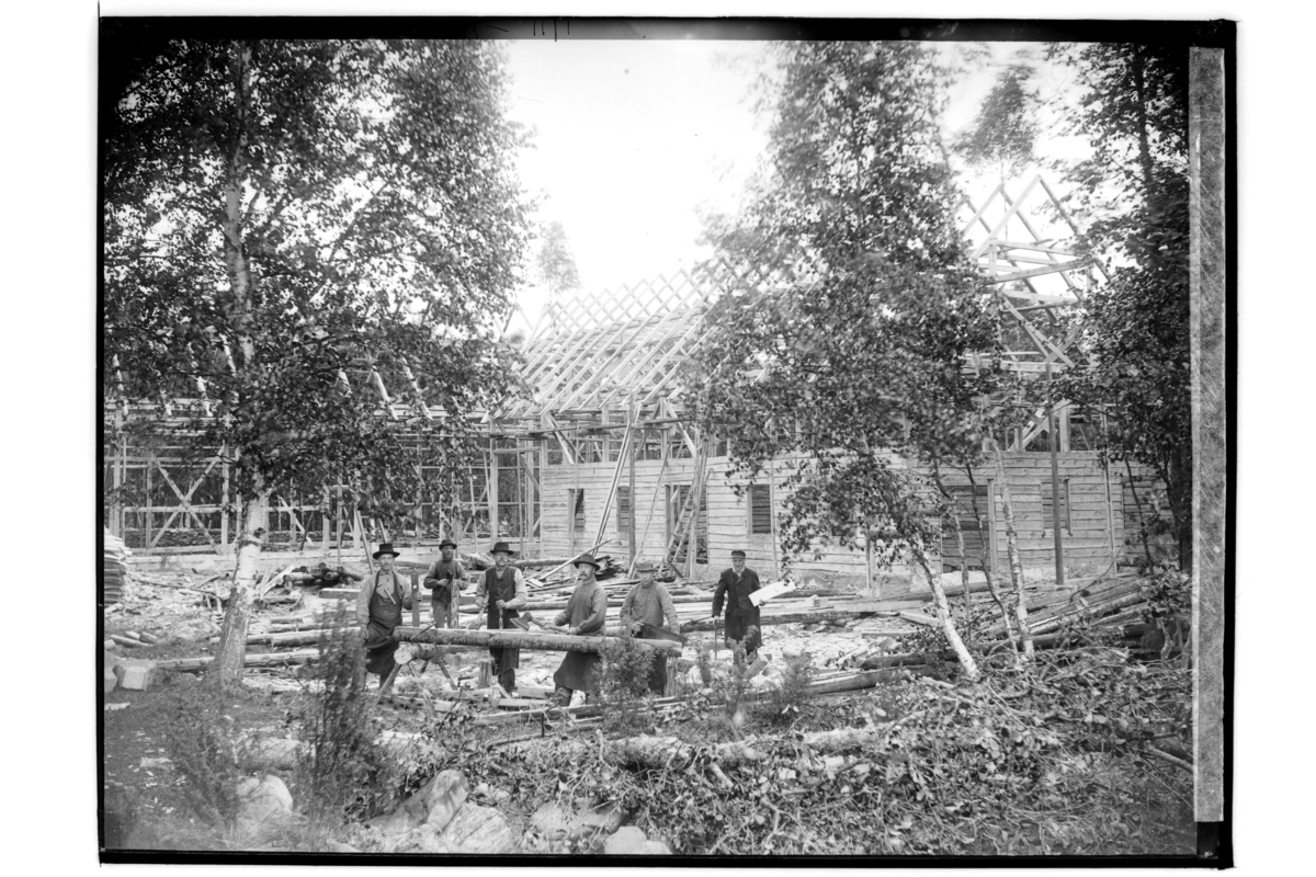 Ladugårdsbygge, 6 byggnadsarbetare.