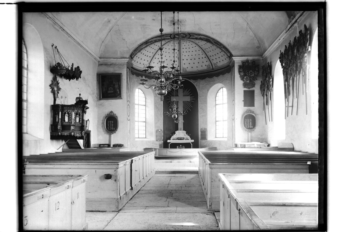 Lillkyrka kyrka, interiör av kyrkan före restaurering.