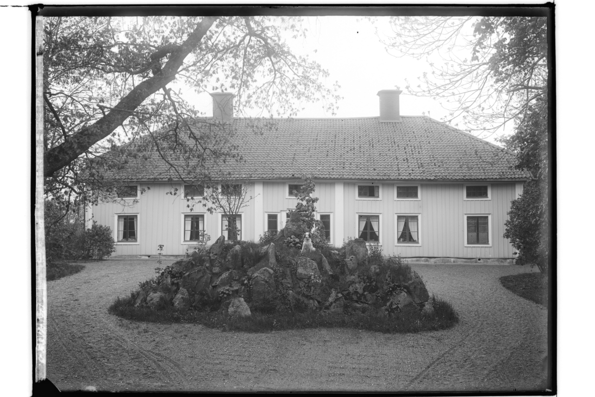 Runnaby Herrgård, en och en halvplans bostadshus i trä med valmat tak. Herrgård från 1700- talet. Baksidan.