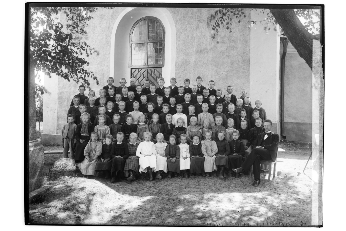 Rinkaby skola, skolklass, 65 barn med lärare.