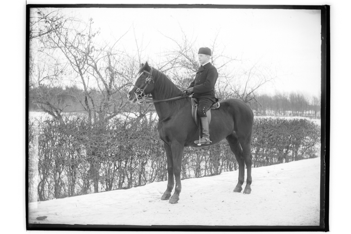 En ryttare till häst. Josef Forsgren, född 1881 på Landåsen, i Mosjö socken. Han var son till Kristina Andersson, och bror till Gerard och David Landè. Hans föräldrarhem, "Mor Kristinas stuga" låg på Landsvägen. Stugan flyttades senare från Landsvägen till hembygdsföreningen i Mosås i samband med vägens utbyggnad. Parstugan är fullt möblerad så som den en gång var. Stugan som tillhör stiftelsen "Till Mor Kristinas minne", grundad av David Landè, var under många år hem åt "ogifta mödrar". Se även bild: OLM-Nr.3008-1