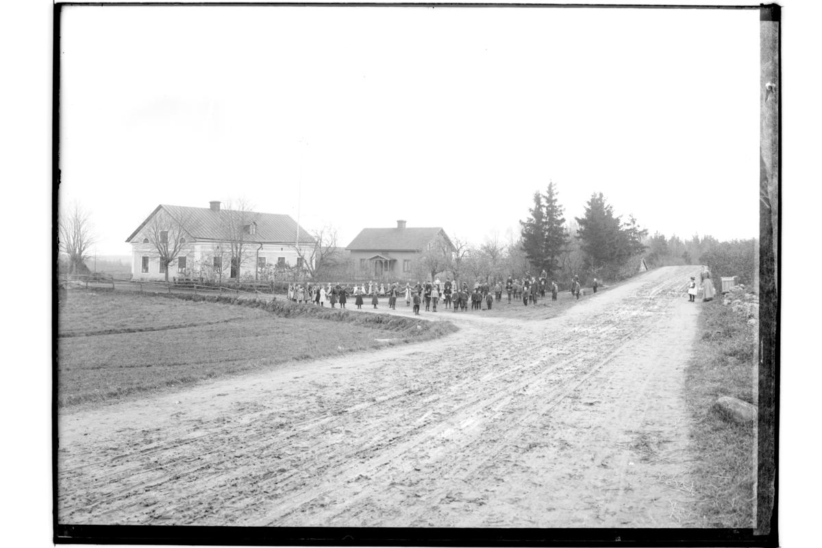 Egeby skola, skolbyggnad och lärarebostad, 57 skolbarn med lärare.