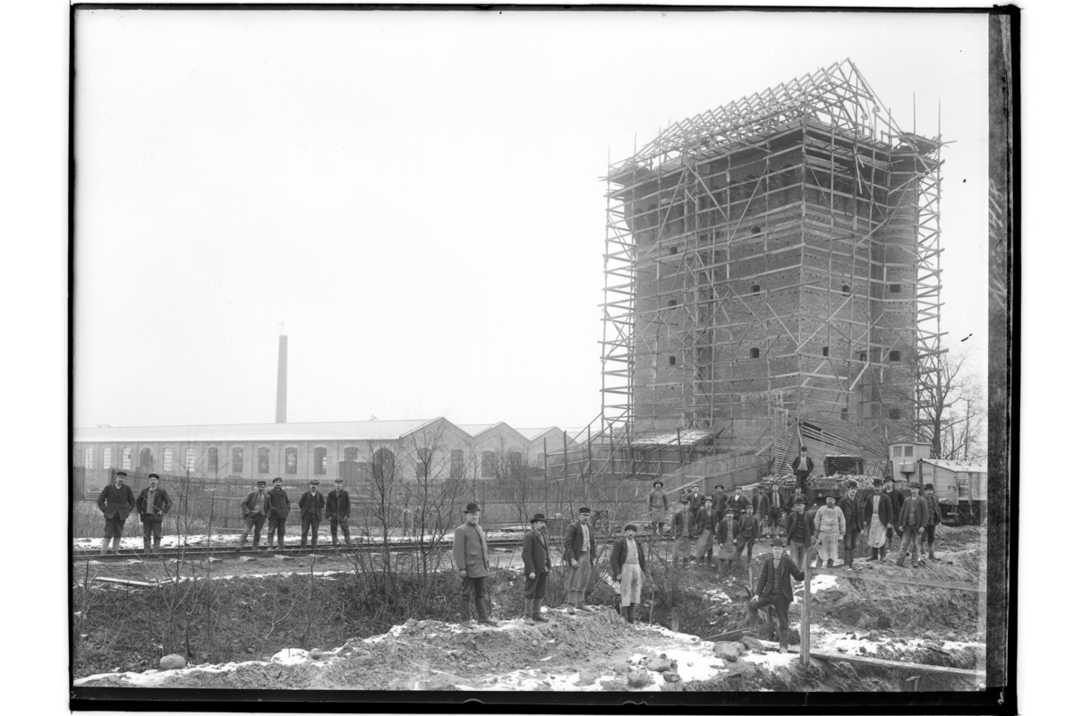 C.V:s vattentorn under byggnad, byggnadsarbetare.