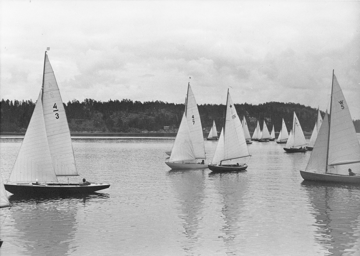 Båtar under KSSS poängseglingar i Saltsjöbaden hösten 1943.