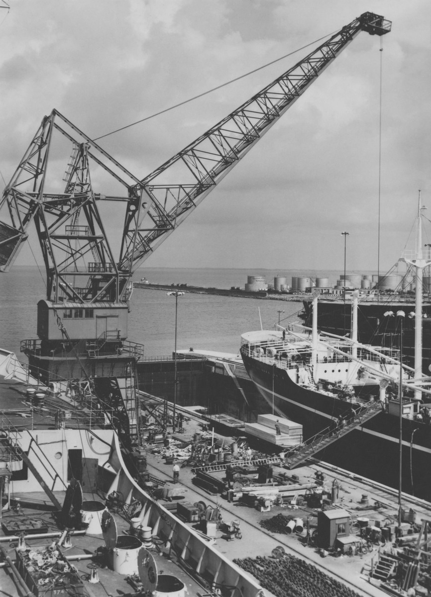 Bild från varvsområdet med fartyg under byggnad.