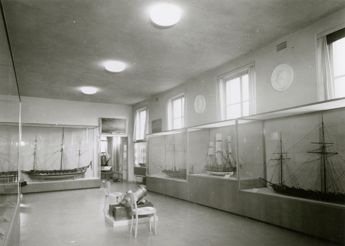 Utställning i Skärgårdsflottans sal, sal 15. Fotograferat från söder. Fartygsmodeller m.m.