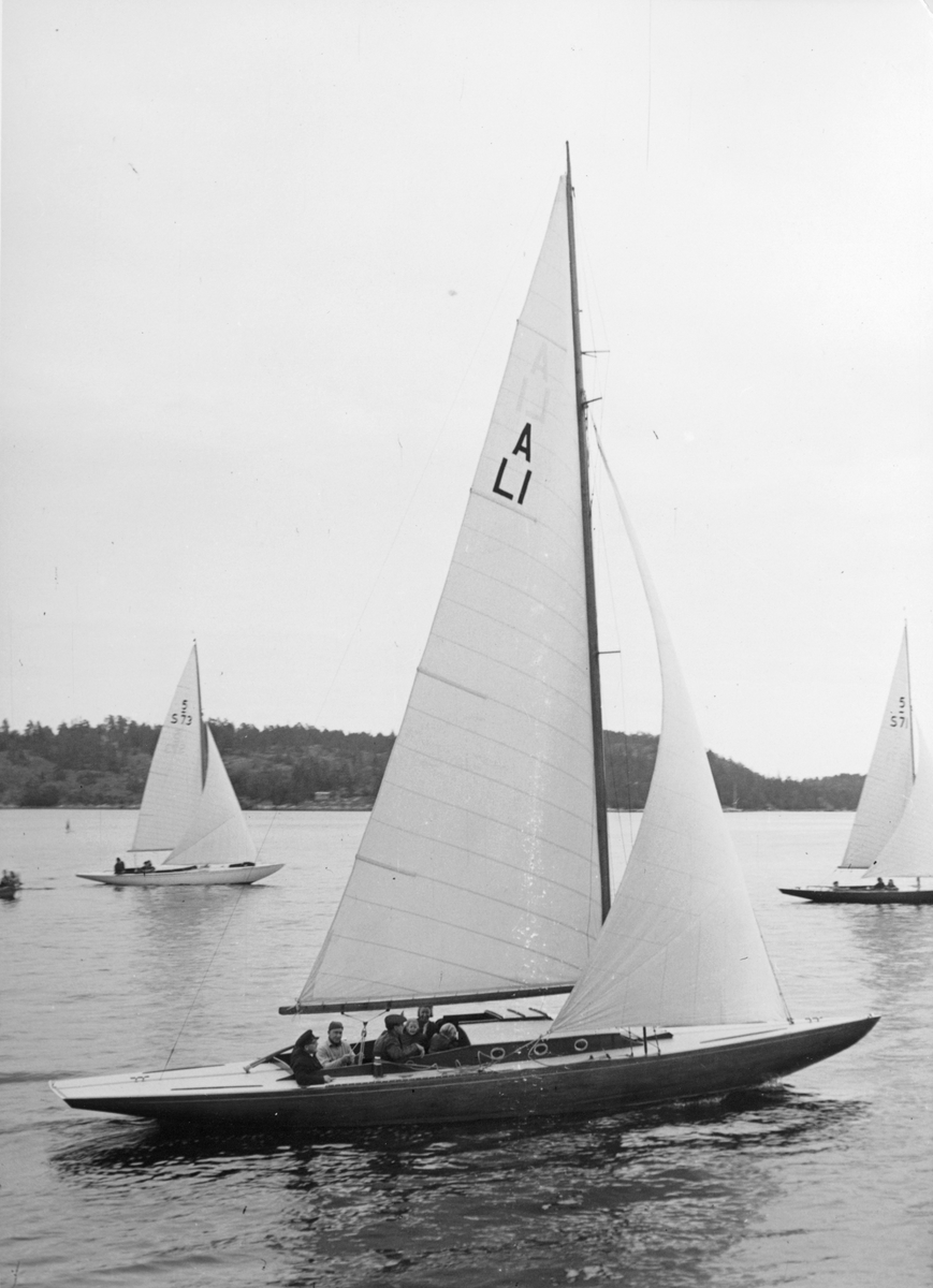 Särklass A-båten LISS-GUN V under KSSS poängseglingar hösten 1943.