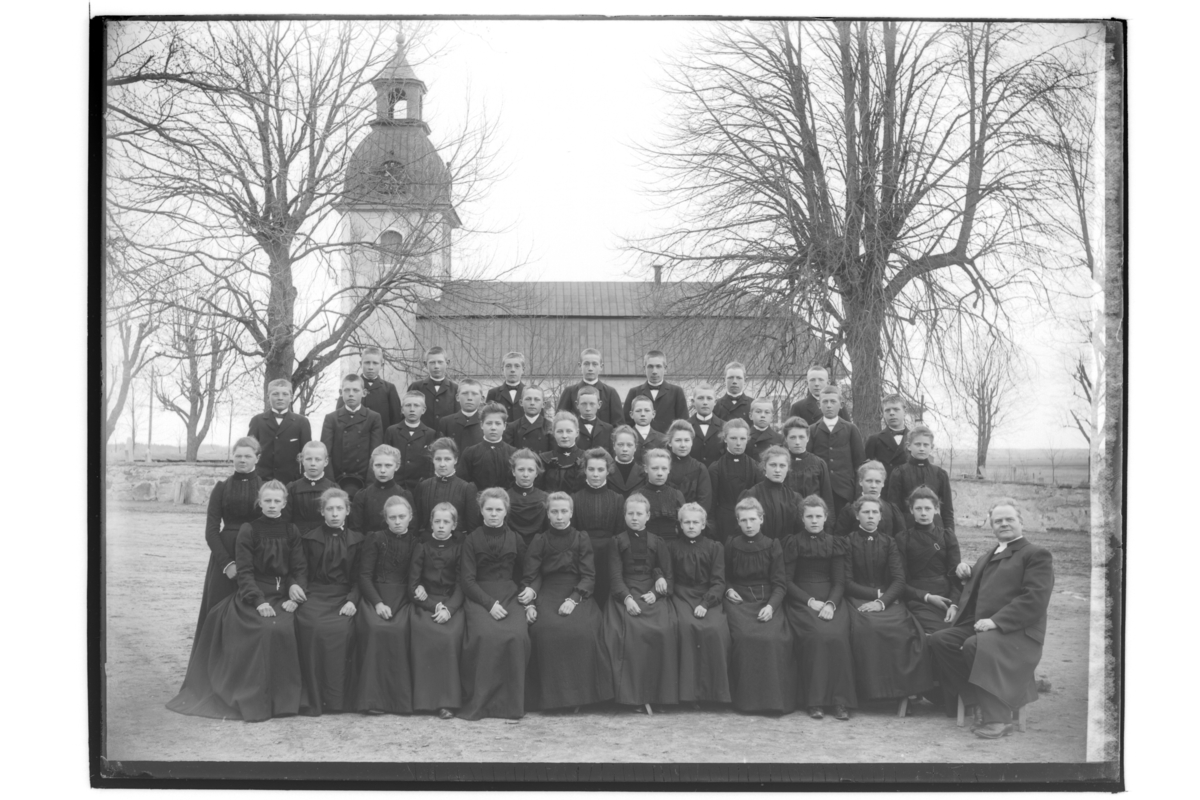 Konfirmander, 47 läsbarn och kyrkoherde T.E. Morin.