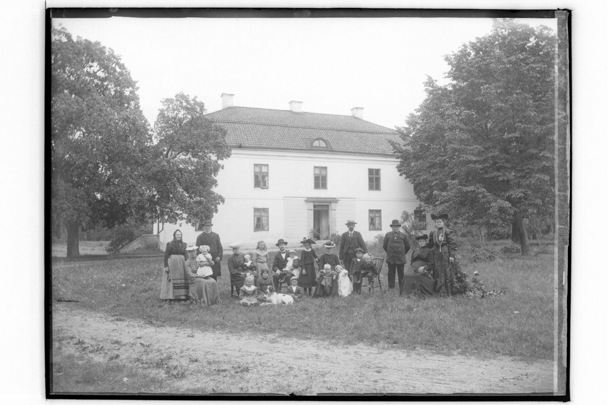 Tvåvånings bostadshus, 22 personer och en hund.