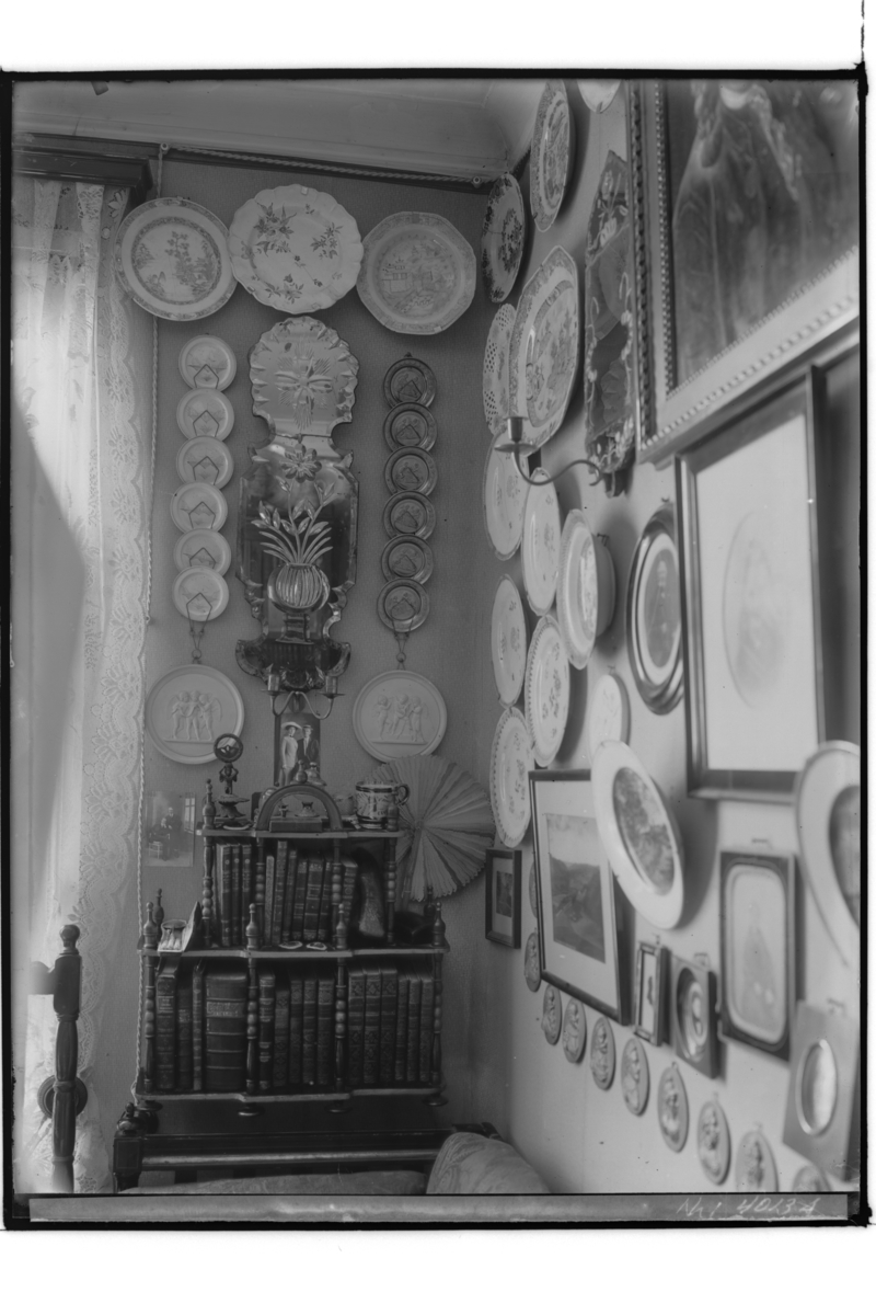 Titel: Rumsinteriör med tavlor och antikviteter. Kassör Rudolf Söderlind