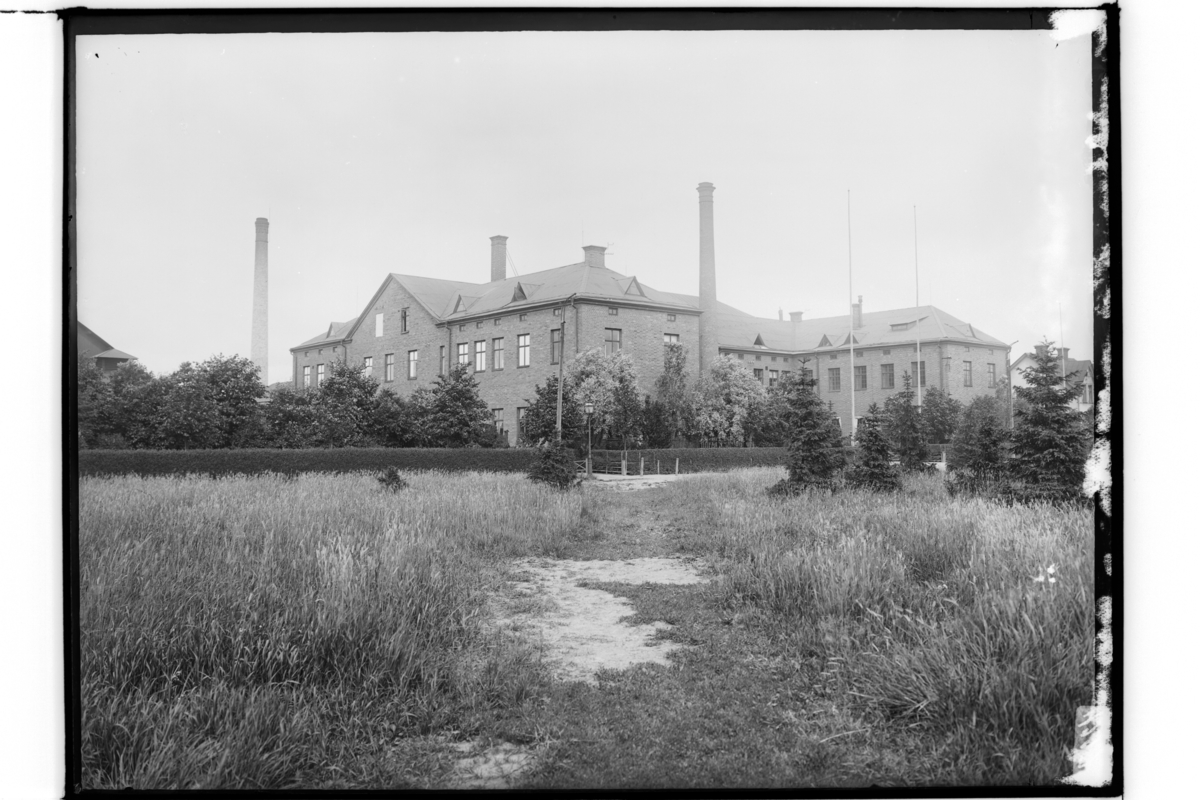 Örebro Kexfabrik AB, tvåvånings fabriksbyggnad i tegel.