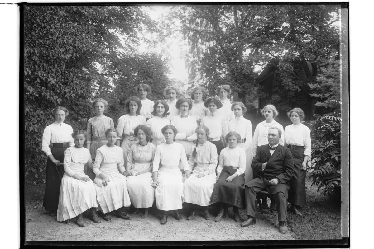 Privata konfirmander, 19 läsbarn, flickor och en präst.