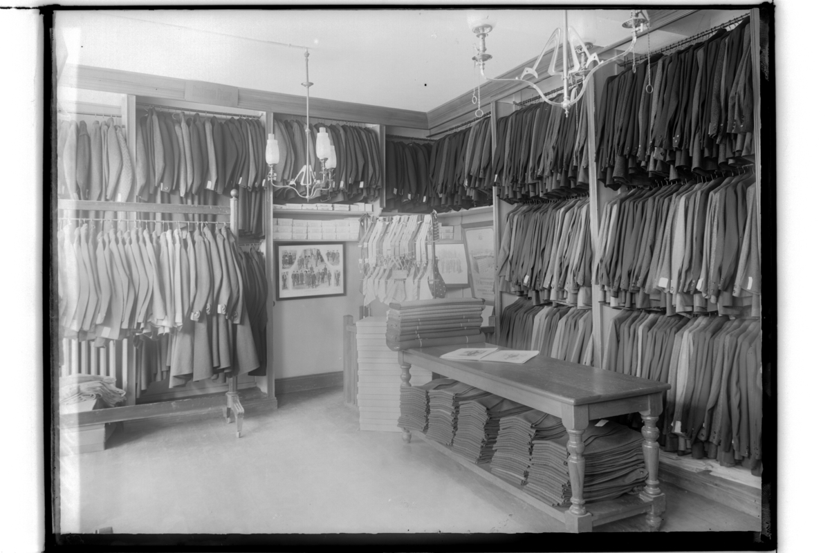 Nordiska Konfektionen, affärsinteriör, herr- och gosskläder.