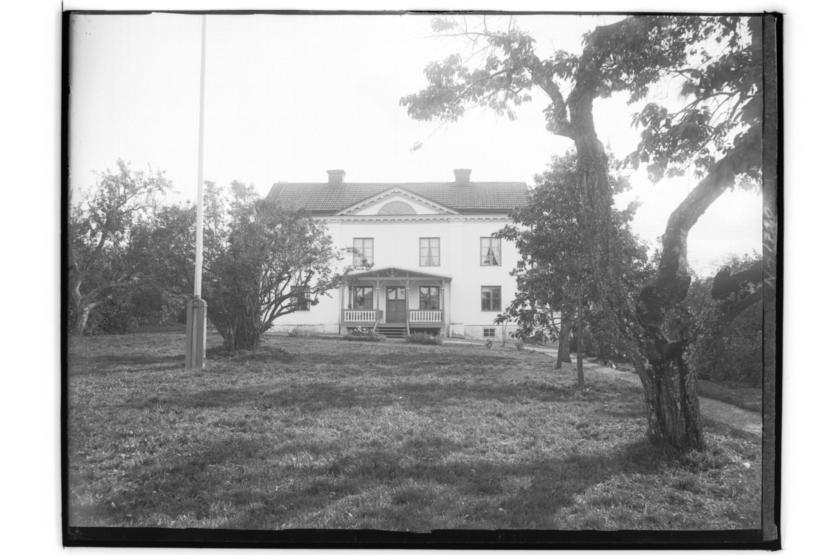 Ullavi Herrgård, tvåvånings reveterat bostadshus i trä med veranda i snickarglädje.