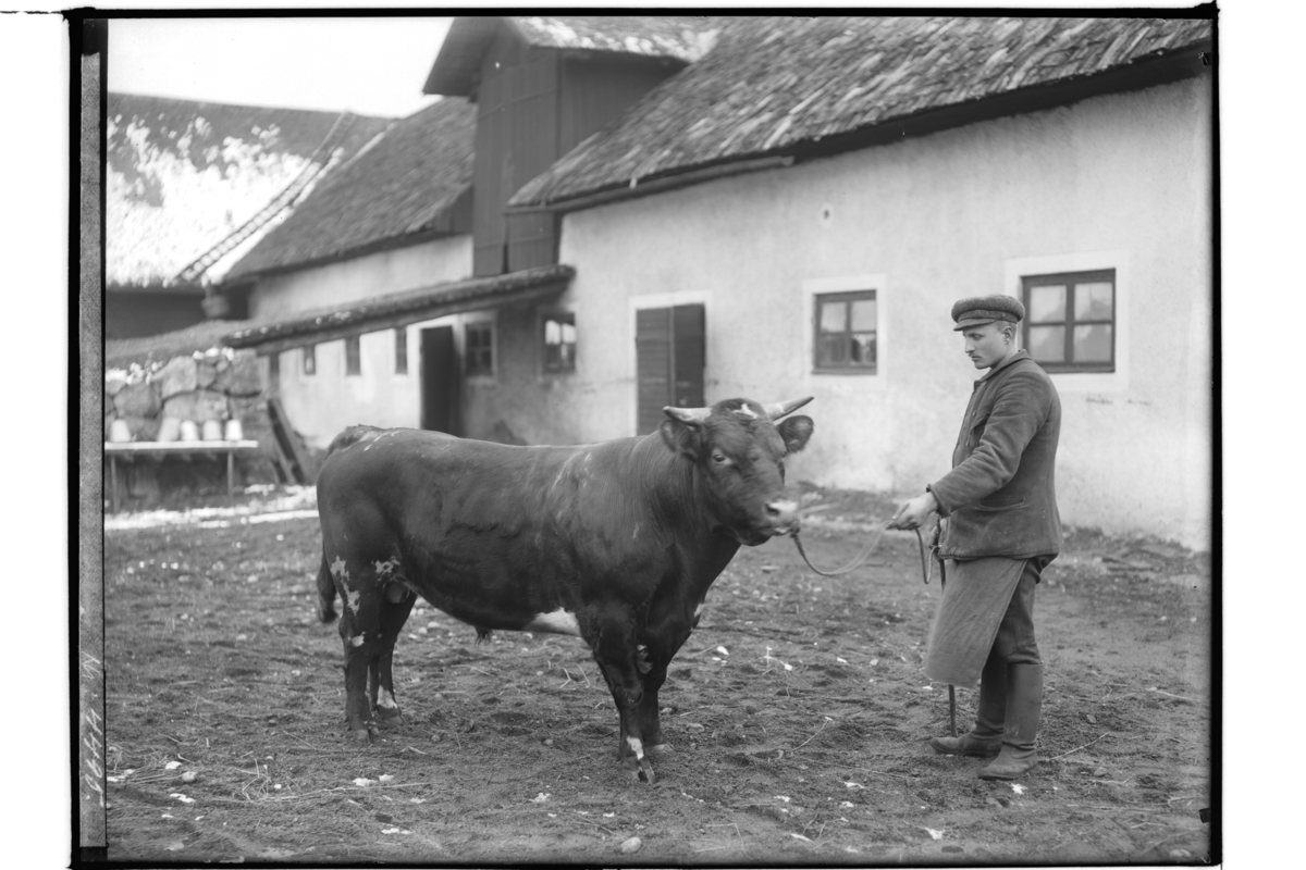 En man med tjur.