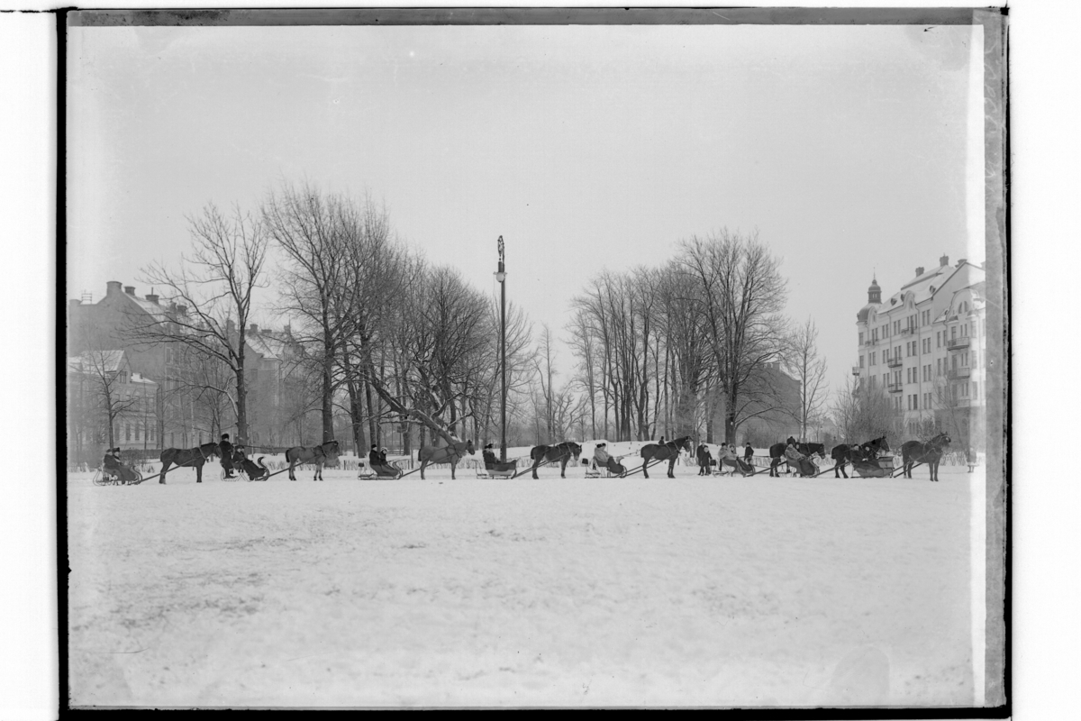Slädparti vid Oskarsparken. Bilden tagen från Stortorget.