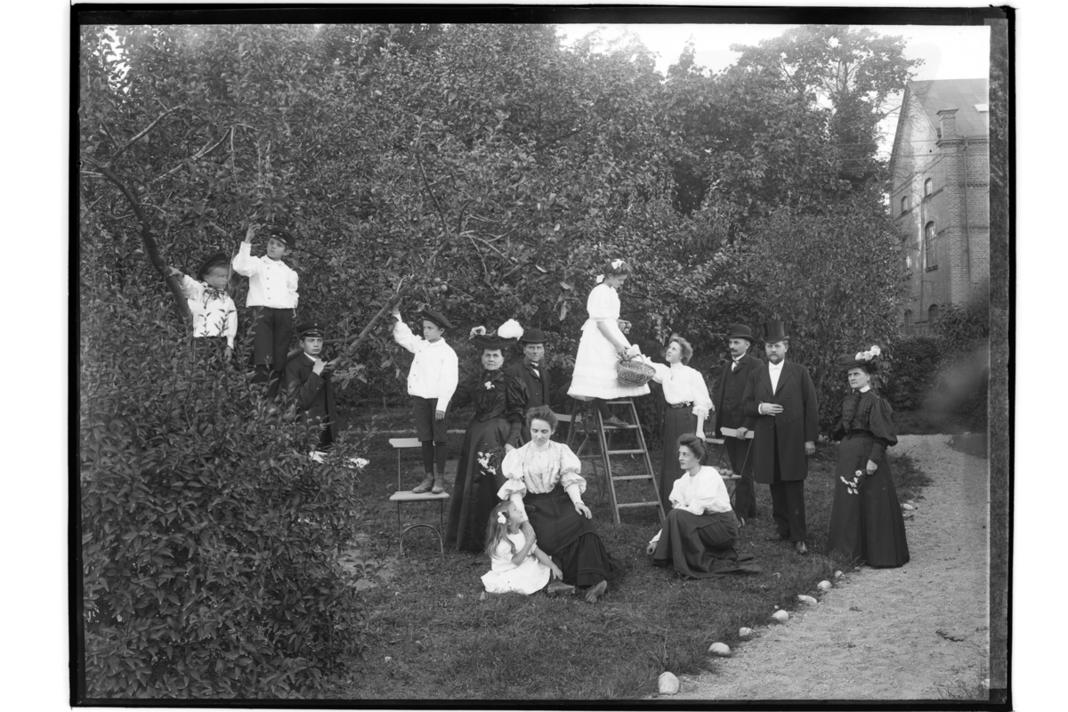 Släktgrupp i trädgården.