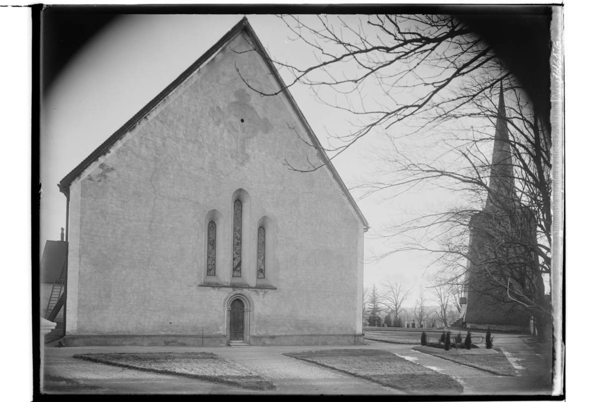 Sköllersta kyrka, kyrkgaveln och klockstapeln.