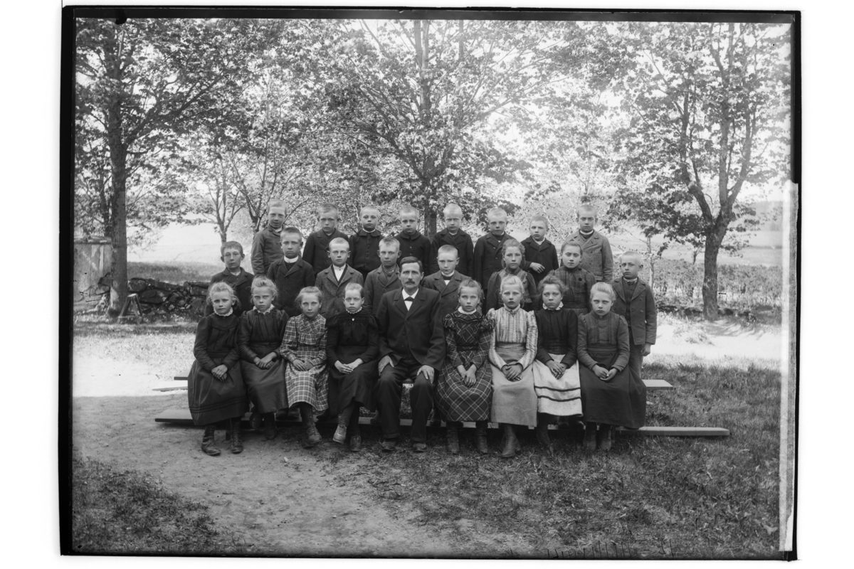 Täby kyrkskola, skolklass, 24 skolbarn med lärare magister Kilström.