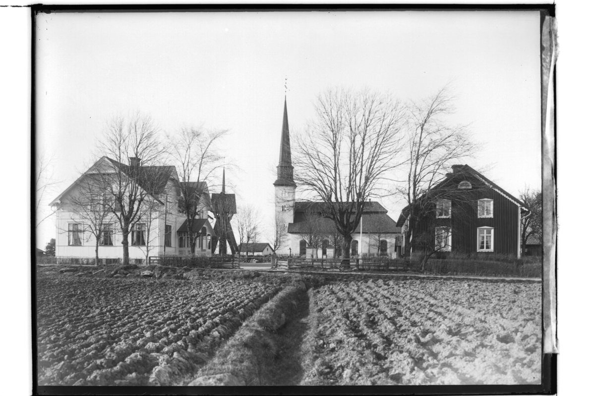 Glanshammars kyrka, kyrkobyggnad, två st. en och en halvvånings bostadshus.