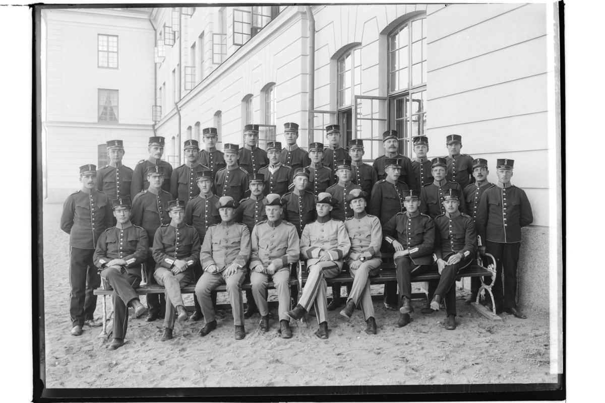 33 soldater framför kasern.
