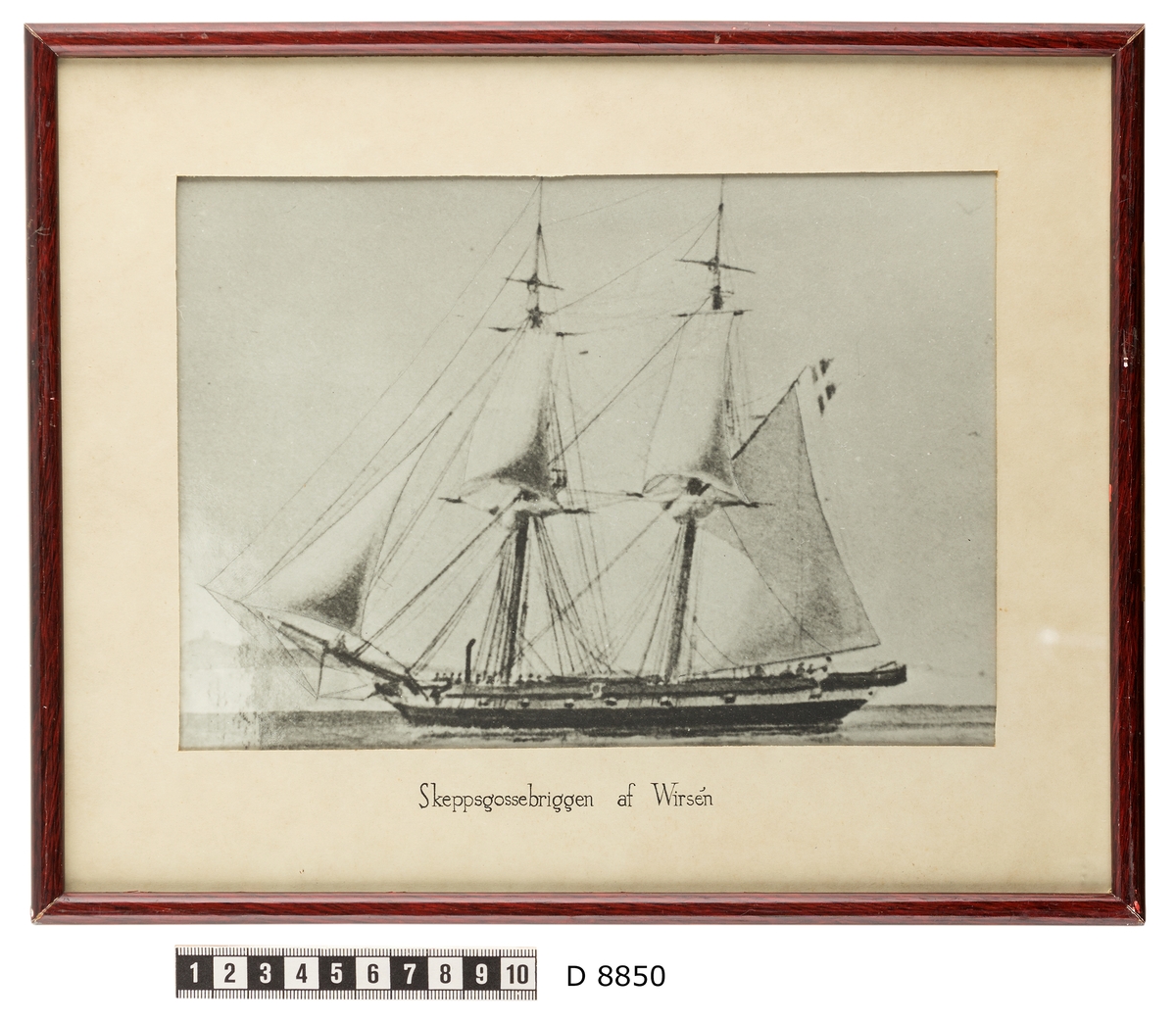 Titel: Denna reprofotografering efter en målning föreställer skeppsgossebriggen Af Wirsén till havs.