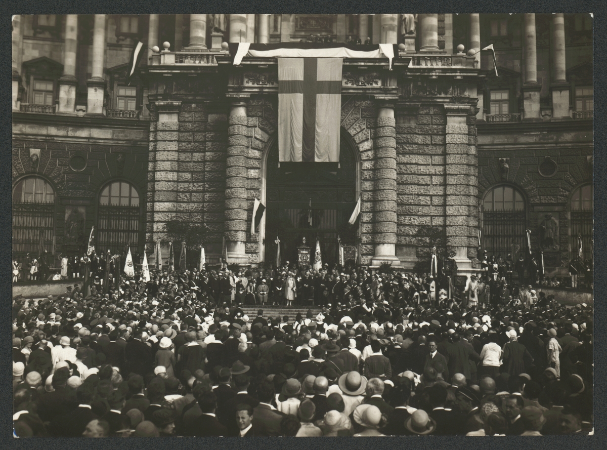 Bilden visar en evenemang i Wien med Österrikets president Michael Hainisch. I centrum på bildens övre del syns en skandinavisk flagga. Förmodligen togs bilden i samband med Axel Åckerbergs utmärkelse med "Die grosse silberne Medaille für Verdienste um die Republik Österreich" 1927.