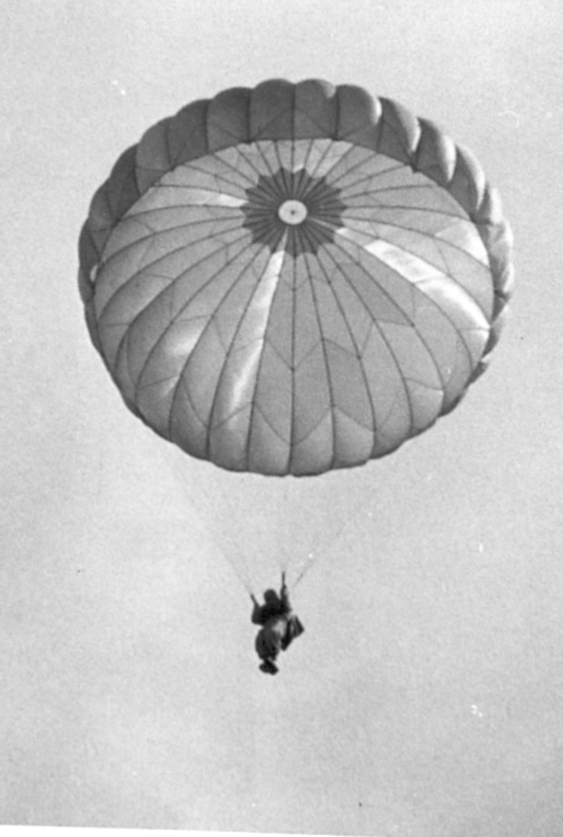 Fallskärmsjägarskolan Karlsborg 1955.Fallskärmshoppning.