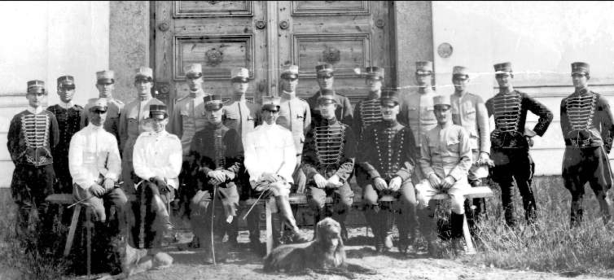 Ridskolekursen framför hingstridhuset på Strömsholm.