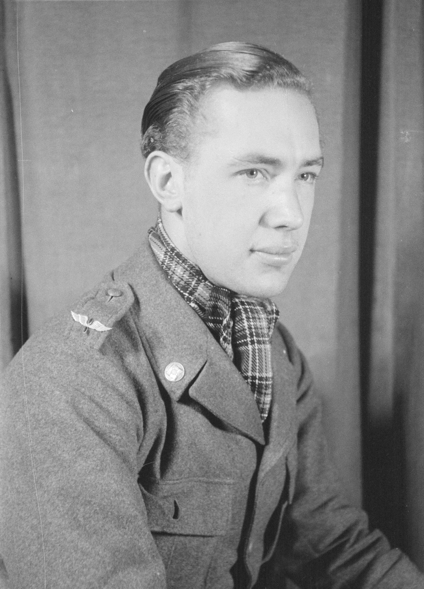 Porträttfoto av sergeant Bengt Erik Westberg (nummer 840), bilreparatör vid F 19, Svenska frivilligkåren i Finland under finska vinterkriget, 1940.